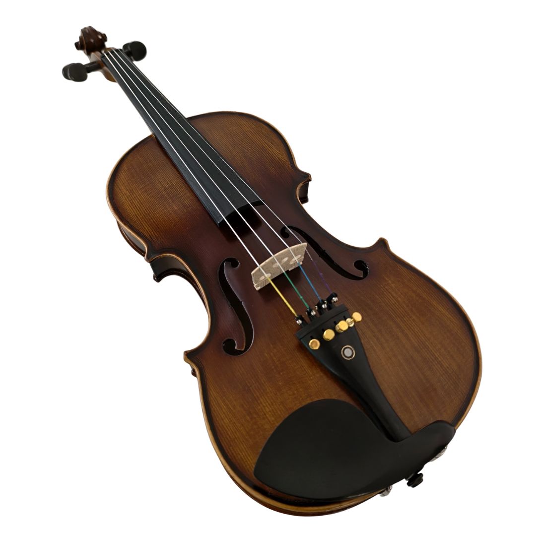 El violín de estudio PF modelo GV104A produce un sonido más cálido y con más cuerpo que los modelos de principiante, y ofrecen además una estética más refinada y terminaciones de mayor calidad.